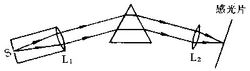 圖中所示是三棱鏡色譜儀的基本結構。狹縫S與棱鏡的主截面垂直,放置在透鏡L的物方焦面內,感光片放置在透鏡L的像方焦面內。用光源照明狹縫S, S的像成在感光片上成為光譜線,由于棱鏡的色散作用,不同波長的譜線彼此分開,就得入射光的光譜。棱鏡攝譜儀能觀察的光譜范圍決定于棱鏡等光學元件對光譜的吸收。普通光學玻璃只適用于可見光波段,用石英可擴展到紫外區,在紅外區一般使用氯化鈉、溴化鉀和氟化鈣等晶體。普遍使用的反射式光柵光譜儀的光譜范圍取決于光柵條紋的設計,可以具有較寬的光譜范圍。